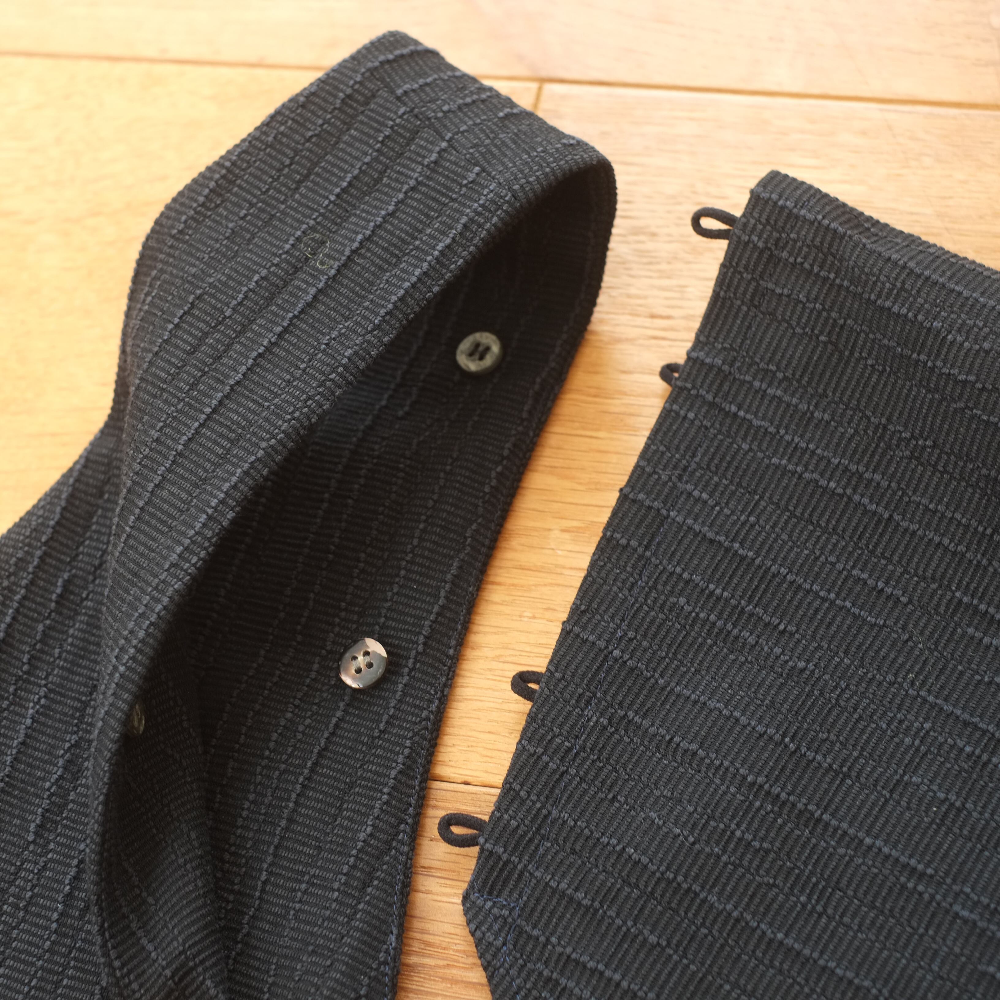 取り外しフレア袖は、釦とループで取り外せる仕様になっており、袖山のみのキャップスリーブとなります.(袖下無し)