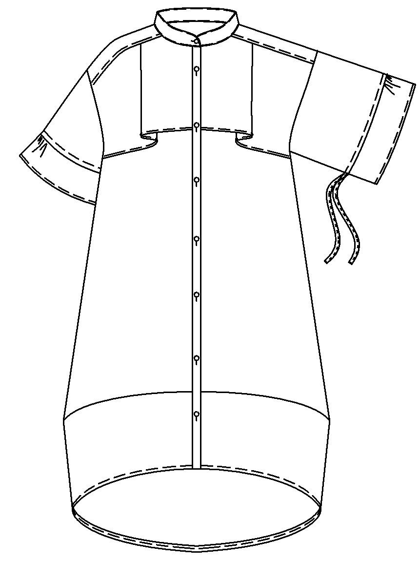 胸のあたりのビッグフラップ(タック入り)が特徴的なのと、袖の切り替えには共布ひもが通っていて、少しギャザリング出来ます。